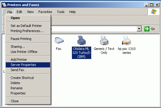 Go to Start/Settings/Printers and select the printer. In the box file menu