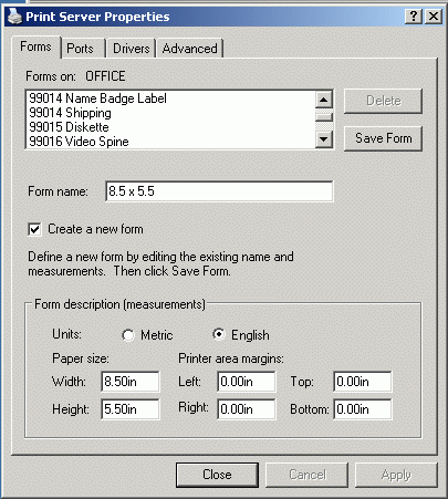 Go to Start/Settings/Printers and select the printer. With Right mouse select properties (or printing preferences) and find printer selection size. Locate a custom setting choice and specify 8.5 for width and 5.5 for height and save that with either giving it a "8.5 x 5.5" name or "Custom" something choice name available.